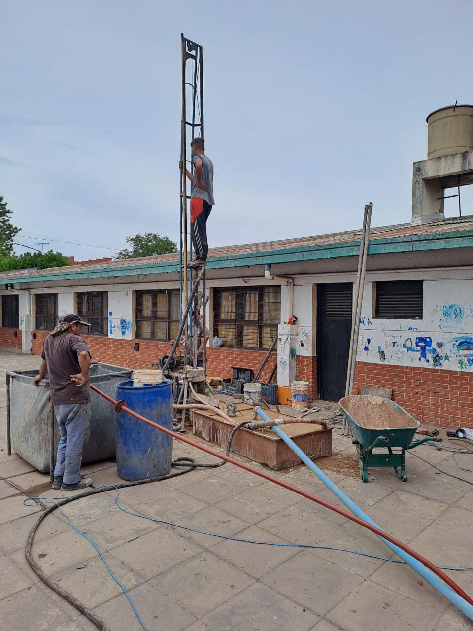 Escuela Primaria N°34. Se comenzó con la nueva perforación de agua.