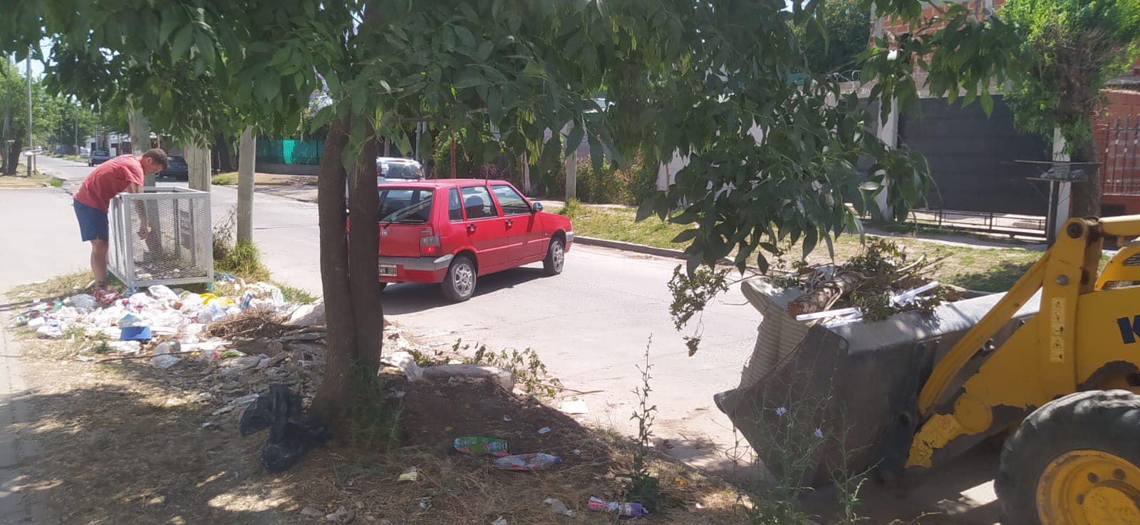 Escuela Secundaria N°10 .Ya se realizo las tareas de limpieza. Se han recolectado montículos de tierra, ramas y basura que estaba en la vereda del establecimiento.