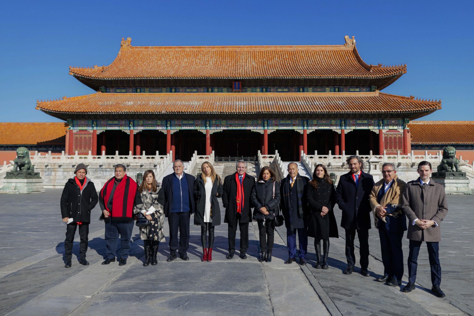 A la 1.15 de la Argentina (12.15 en China), Fernández, acompañado por el canciller Santiago Cafiero y el gobernador bonaerense, Axel Kicillof, asistió al Gran Palacio del Pueblo. Allí, el Presidente participó de una foto oficial junto a mandatarios de todo el mundo a quienes China invitó especialmente para la ceremonia de inauguración de los Juegos Olímpicos de Invierno de Beijing que se desarrolló ayer viernes.