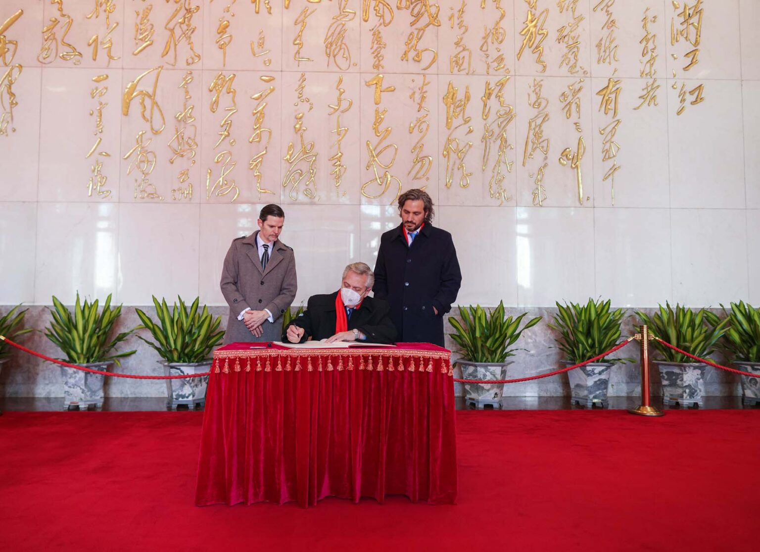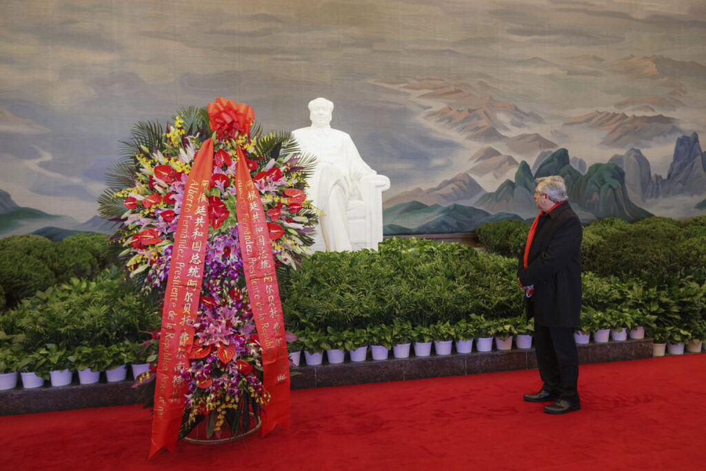 La recorrida continuó más tarde por la plaza Tiananmen el Presidente de la Nación, Alberto Fernández colocó una ofrenda floral en el mausoleo de Mao Zedong, líder del Partido Comunista de China desde 1945 hasta su muerte en 1976.