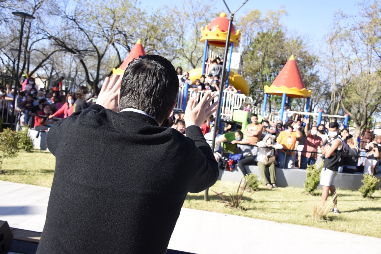 El jefe comunal recordó que «antes de ser intendente allá por 2014, 2015, veníamos con una mesita a hacer los operativos de ANSES y era todo muy apagado, todo muy oscuro, de noche muy feo. Hoy, gracias a Dios, eso cambió, lo transformamos juntos con el esfuerzo y la decisión política para recuperar un espacio público en favor de las familias de acá del barrio Panamericano, que se sentían olvidadas».