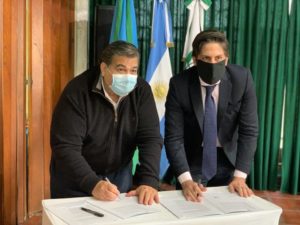 El intendente Mario Ishii y el ministro de Educación, Nicolás Trotta, firmó un convenio para la entrega de netbooks