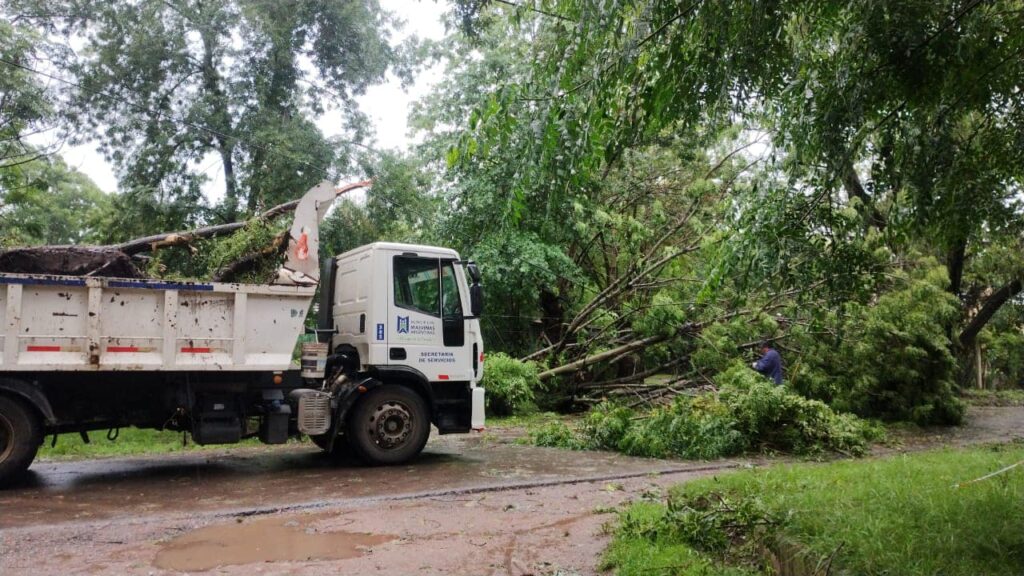 Los equipos están trabajando para remover la caída de postes, cables, árboles y ramas que obstruyeron las calles y provocaron cortes de energía en barrios de Malvinas Argentinas.