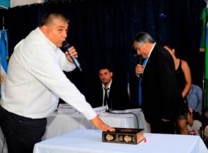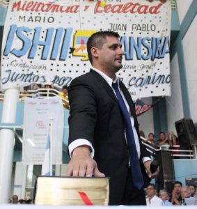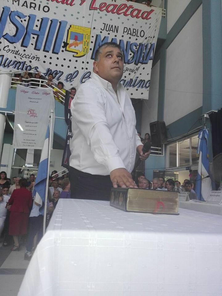 Pablo Mansilla felicito a su padre Juan Manuel Mansilla electo concejal y declaro en la asunción:»realmente, un mimo a la militancia. El logrará representar la escénica y los valores de esta agrupación que crece día a día.»
