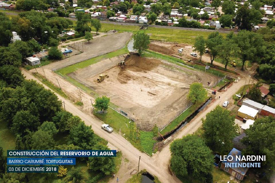 El jefe comunal comentó: “No beneficia solo a Carumbé sino también a los vecinos que están cercanos a la avenida principal, quienes históricamente se inundan cuando llueve muy fuerte. Si bien no es una obra definitiva, es un gran paliativo”. El reservorio forma parte del plan integral de obras que ll