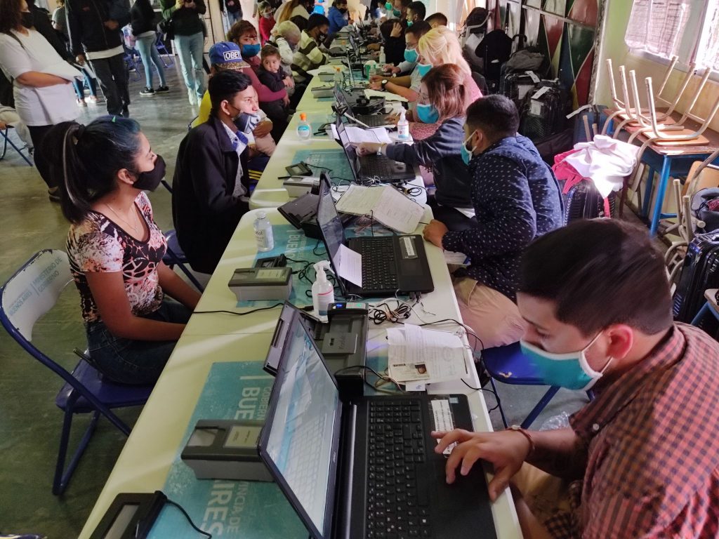 Hoy en el Centro Integrador Comunitario (CIC) en calle Gran Colombia 2800 y San Salvador de Saavedra Lamas en José C. Paz se realizó una articulación con el del Registro Nacional de las Personas (ReNaPer) en pos de seguir garantizando los derechos fundamentales, en este caso, el derecho a la identidad. Según lo dispuesto por el Decreto de Necesidad y Urgencia 297/20 y sus normas complementarias y modificatorias, el ReNaPer y los Registros Civiles provinciales establecieron un programa de trabajo especial en los centros de toma de trámite para preservar la salud pública y seguir garantizando el derecho a la identidad. En función de la situación epidemiológica vigente, las 2200 oficinas donde es posible tramitar el DNI funcionan con modalidades particulares de atención y asignación de turnos, mientras que una parte de ellas permanece sin atención al público.