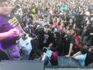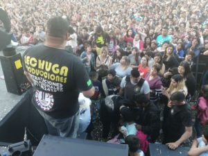 zaba el show en el momento más efervescente Damian Perez, integrante de la banda bajó del escenario para saludar a una de sus más fervientes seguidoras, la cual sufre una parálisis pero eso no la aleja de la música que era evidente que estaba con su familia disfrutando al máximo; minutos después fue Santiago Torres quien ayudo a subir a otra admiradora; en este gesto queda marcado que la música tropical tiene esa cadena de sentimientos se transmiten desde el escenario al público, es real y palpable ; felicitamos a los integrantes de LA BANDA DE LECHUGA por este gesto tan humano.