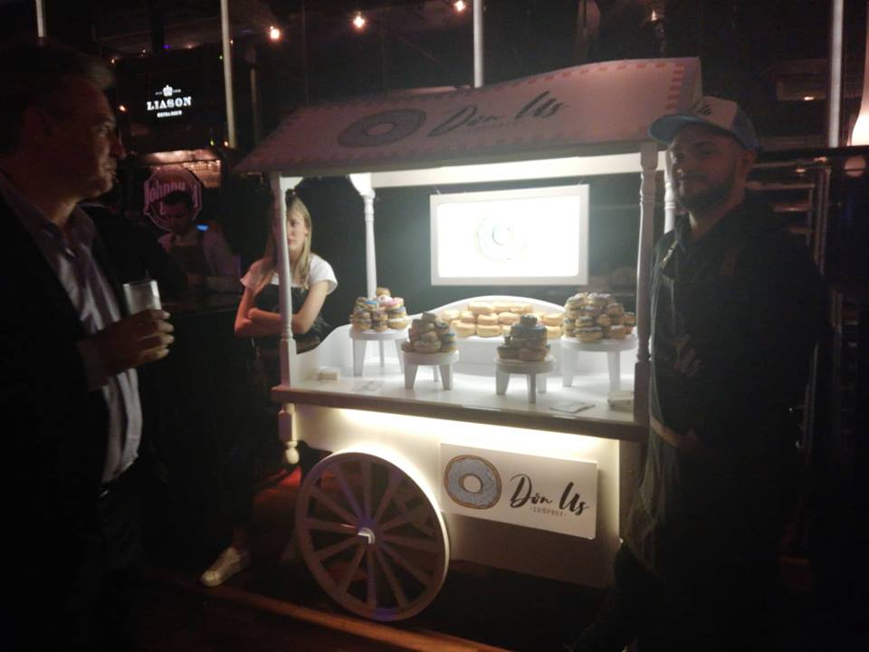 Las estrellas de la noche fueron Why Not barras móviles con excelentes tragos ; y las delicia de la cadena www.jbgood.com , destacan los BBQ Babyback Ribs, La Chimi Hendricks Burger y El Mac & Cheese, acompañados con la mejor coctelería de vanguardia y finalmente las donas de Don Us Company, que ganaron el corazón y no daban a basto ya que los invitados hacian cola para saborearlas. donuscompany.com
